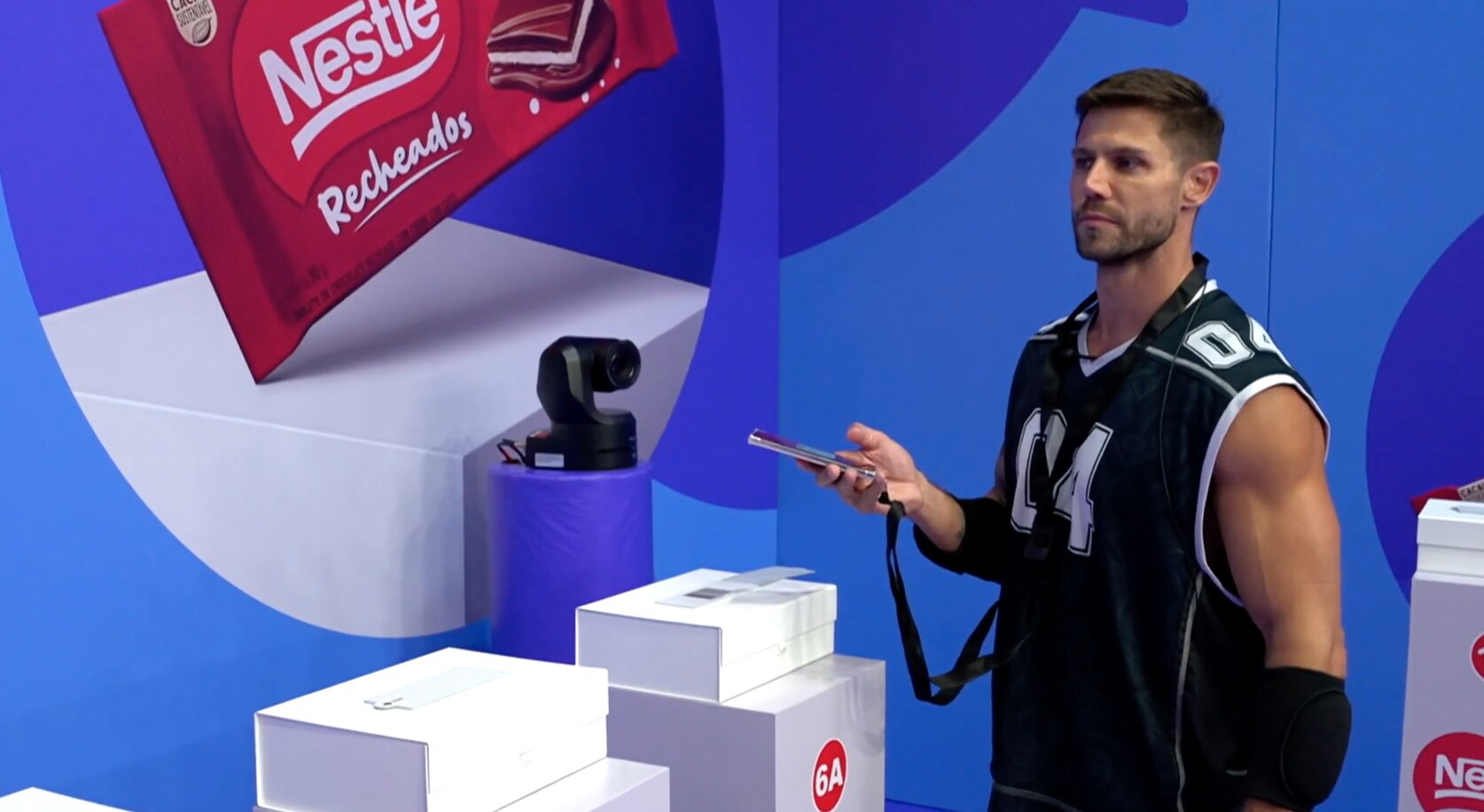 Divididos em duplas, os brothers encararam um circuito onde um lia o código de barras de chocolates usando um celular, e o outro, trancado em uma sala separada, precisava organizar os produtos na ordem correta baseada no som e nas instruções do parceiro.